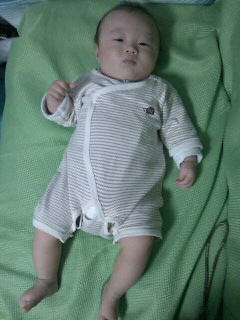 寝返りはちょっと意欲を見せ始めた。半返りくらいまではする。