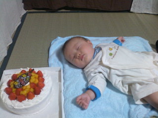 海灯にケーキも作ってくれて、でもケーキカットの時に海灯寝てるしw