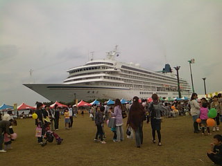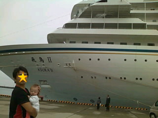 すると、デパートの上から、大きな客船が停まっているのが見えた。